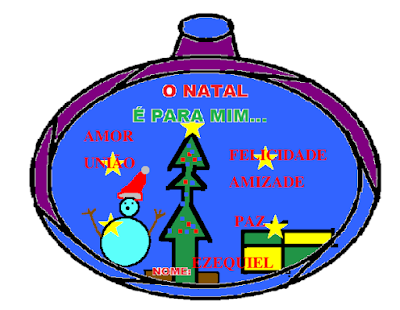 CADA ALUNO DESENHOU UM ENFEITE DE NATAL USANDO O EDITOR DE DESENHOS TUX PAINT E COMPLETOU A FRASE "O NATAL É PARA MIM ..." PARA ENFEITAR A PORTA DA SALA DE INFORMÁTICA.